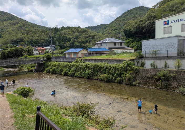 川遊びは子どもにとっても最高の体験だったようで、網を持って魚を追いかけるたびに大興奮でした。キラキラと笑顔を見せて、子供がとても嬉しそうだったのが印象的でした。
